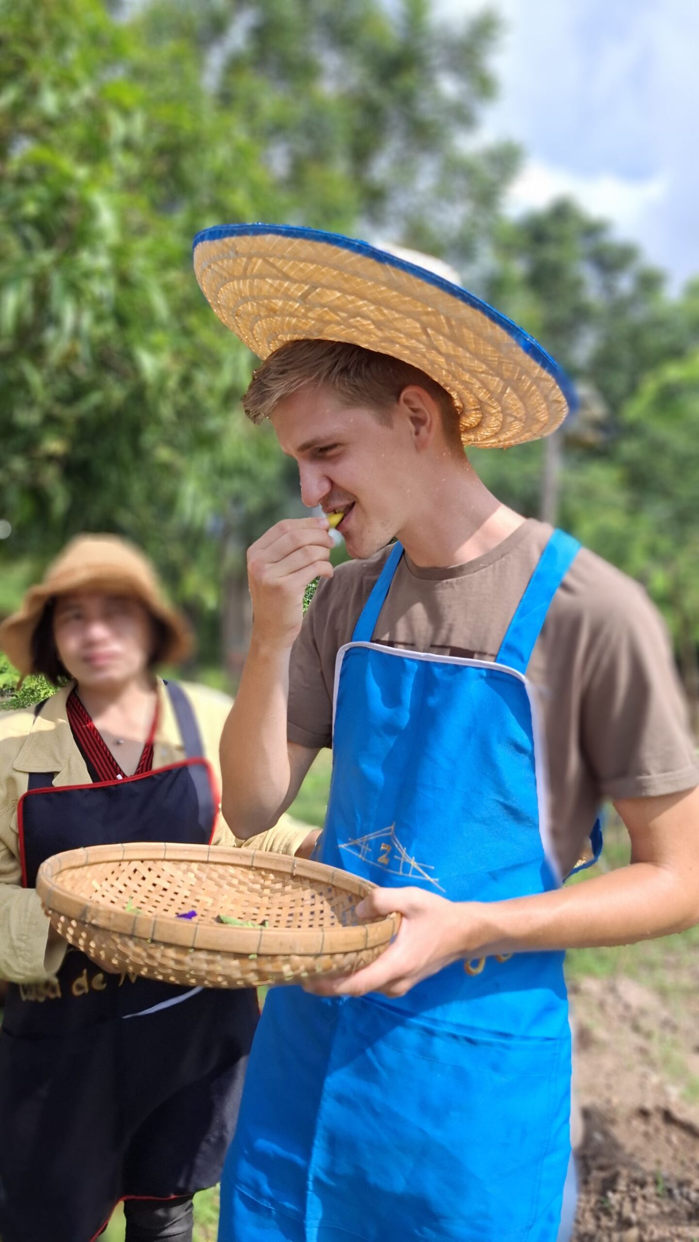 Start with a visit to a lively local market, learning how locals choose fresh herbs and spices. Then arrive at the farm for herbal tea under mango trees, walk through organic gardens, and handpick your own ingredients. The cooking experience unfolds naturally in this peaceful sanctuary, where every dish tells a story of tradition and sustainability.